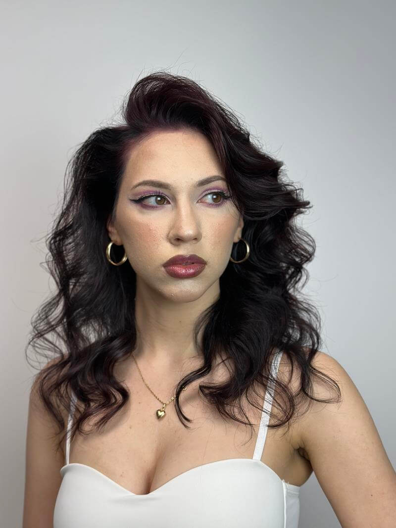 Hair wash with professional products, creating a festive hairstyle using various curling techniques with hot tools. Used cosmetics: Shampoo according to scalp type, mask (depending on hair structure), conditioner, heat-protection spray, styling products (hairspray, mousse, powder, shine).